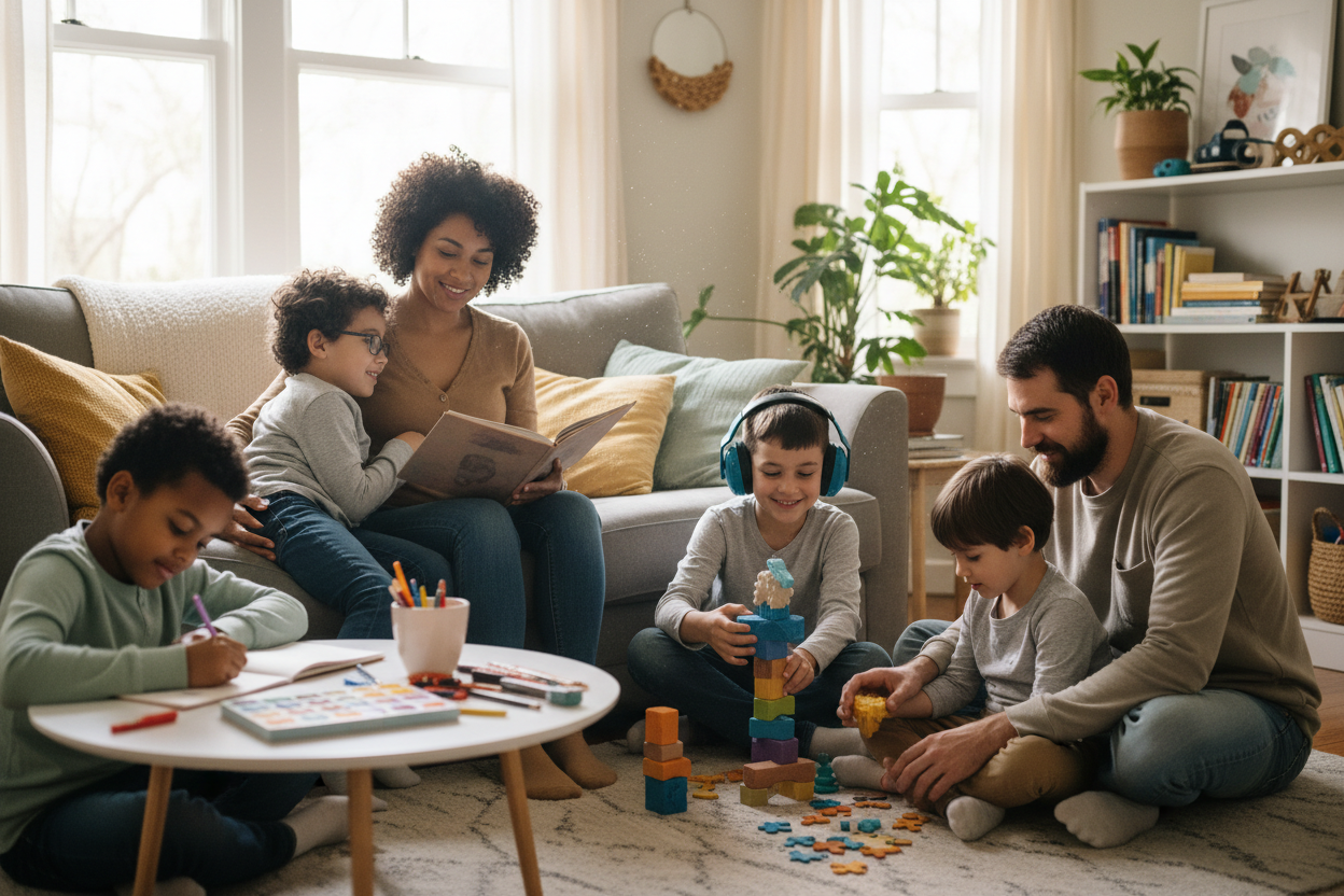 Sélection experte d'objets sensoriels, outils d'organisation et ressources digitales. Testés, approuvés, expliqués avec amour. Tout ce dont votre famille a besoin, réuni enfin en un seul endroit.